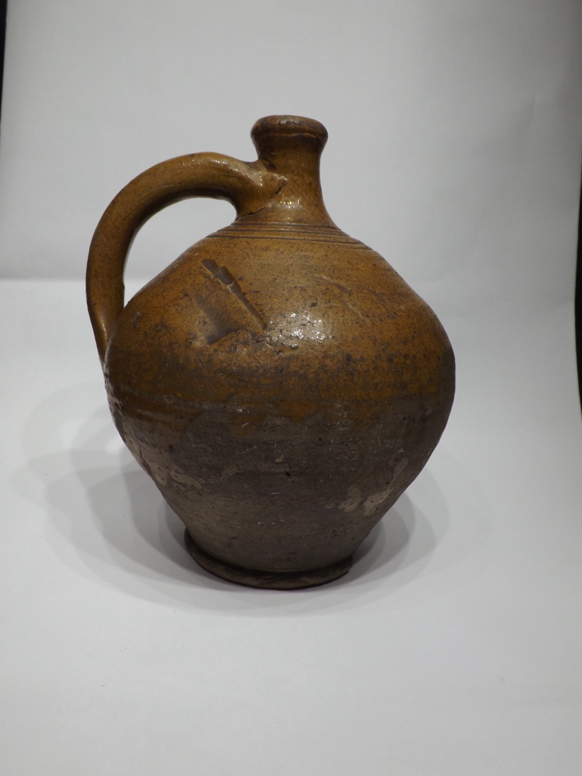 Here we have a very interesting piece for sale a 16th/17th Century wine flagon in reasonably good condition. This flagon originally had a salt glaze which has faded in some places due to age but give the flagon a lovely warm yellow colour. Made of clay the flags has a bulbous shape and could possibly be a little earlier than specified. Measuring at 11" high with a circumference of 28" at its widest point this is a wonderful piece of history.