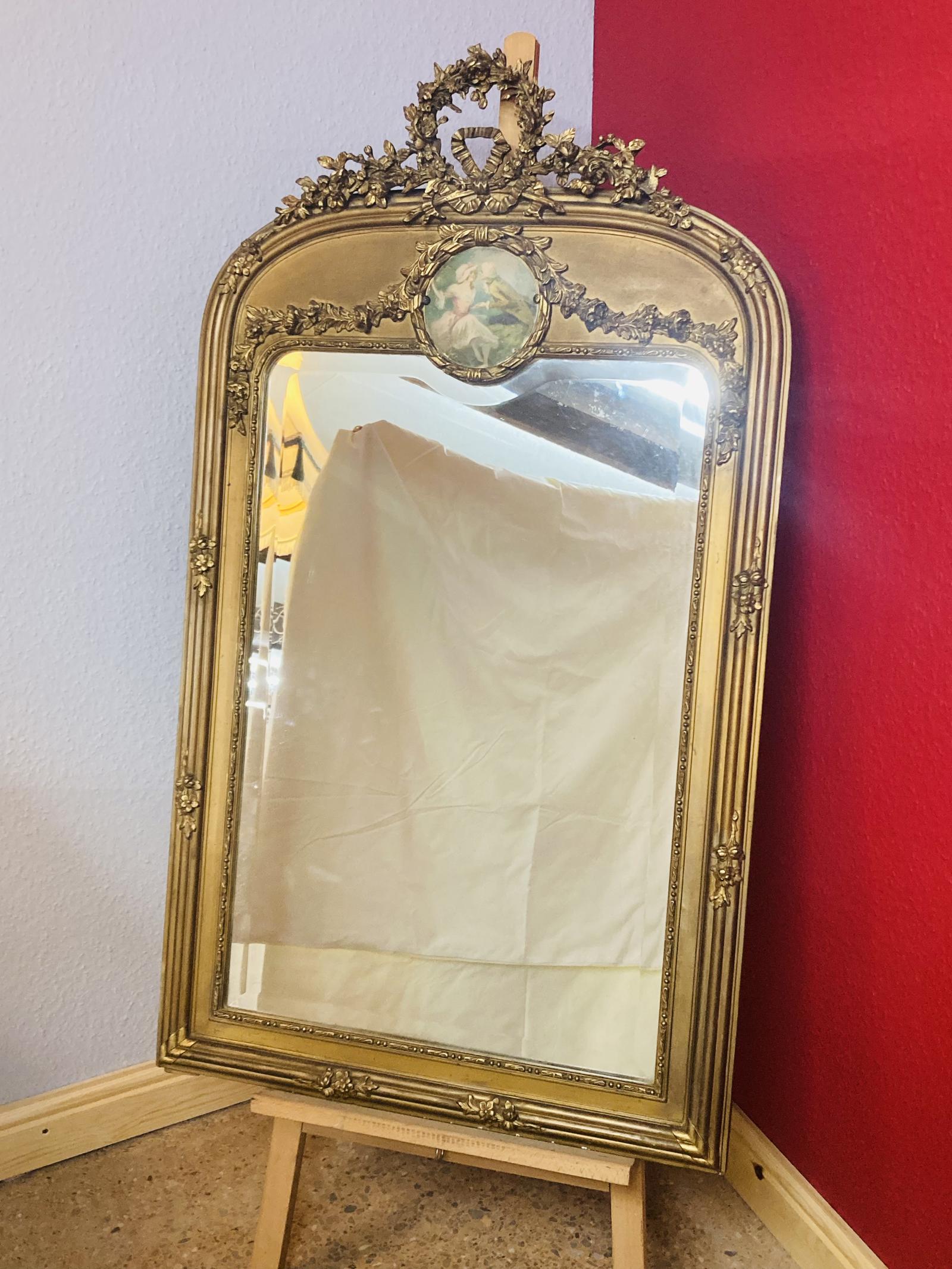19th Century French Mirror with Painted Panel