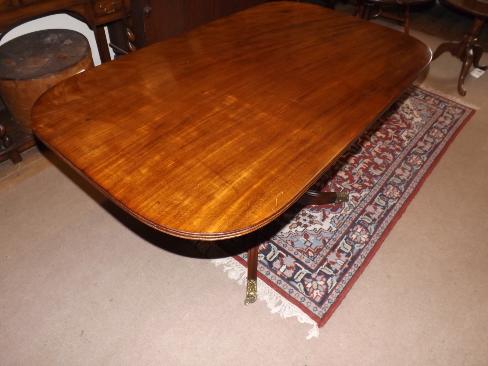 Beautiful regency mahogany breakfast table. The top is made of a single piece and has a stunning array of colours that almost fan over the expanse of the top.
