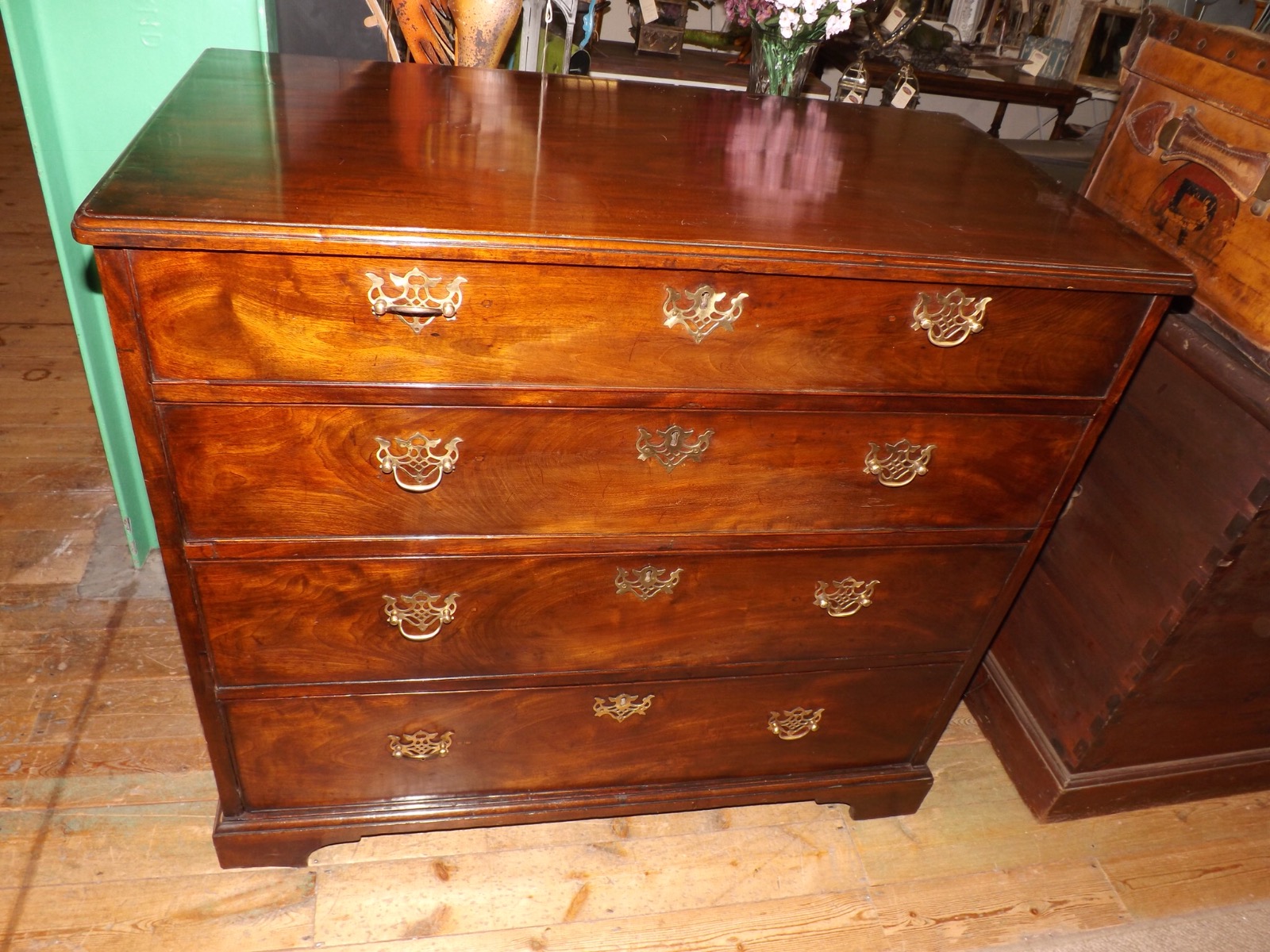 Georgian Mahogany Chest of Drawers with brass detailing. There are four long drawers. This beautiful piece could grace any bedroom giving the impression of ageless style and taste.
