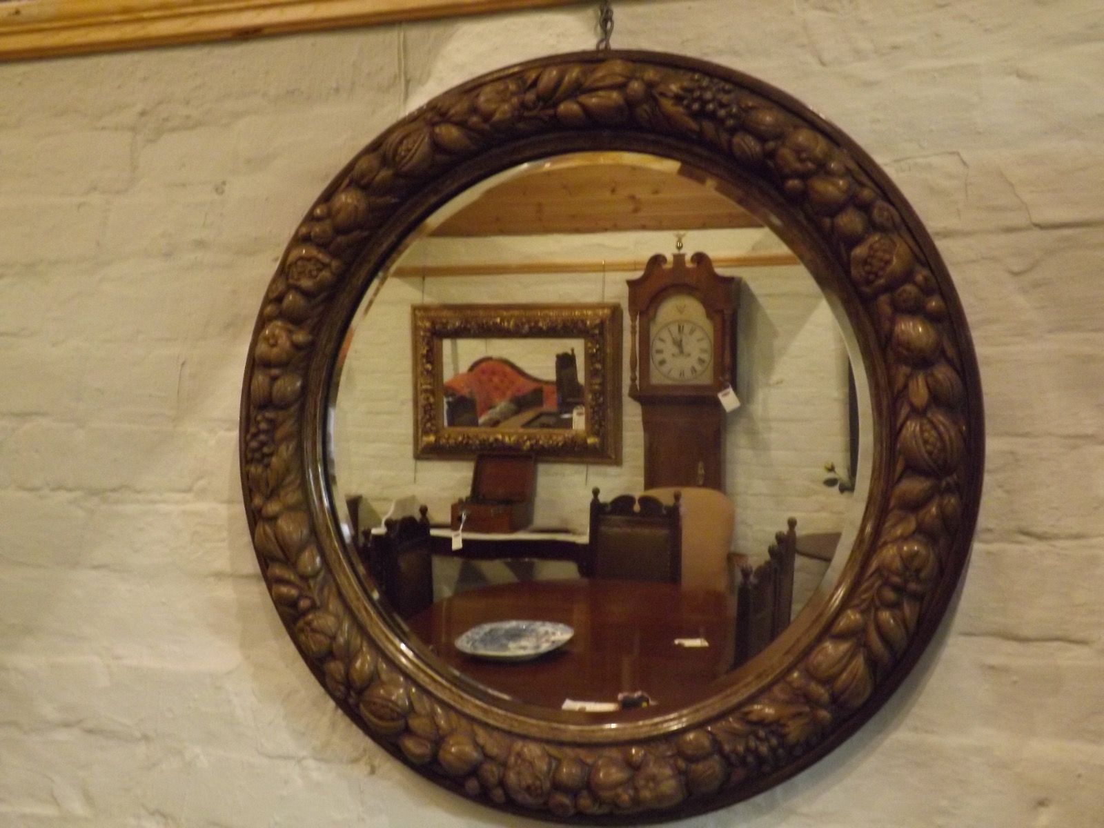 Unusual Edwardian mirror with bevelled edges and carved surround.