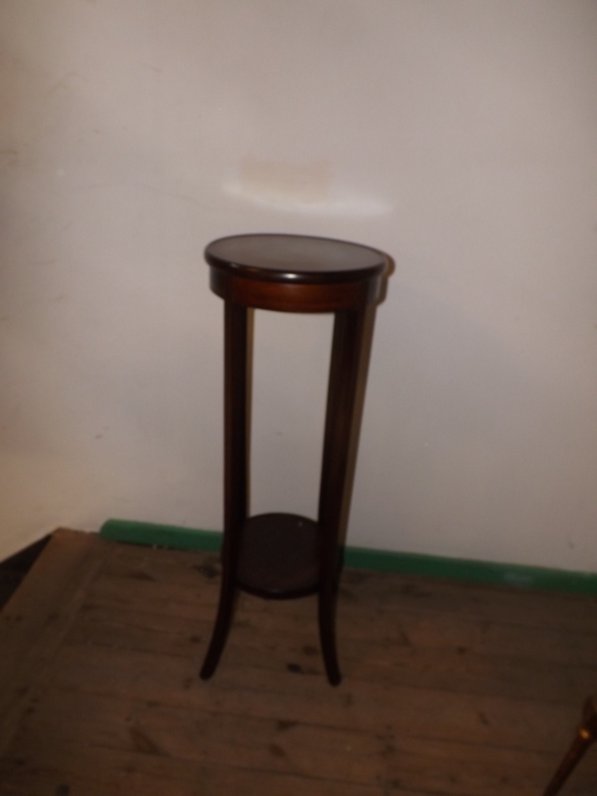 This is a beautiful and simple classic Edwardian antique two tier pot stand with a subtle inlay pattern.