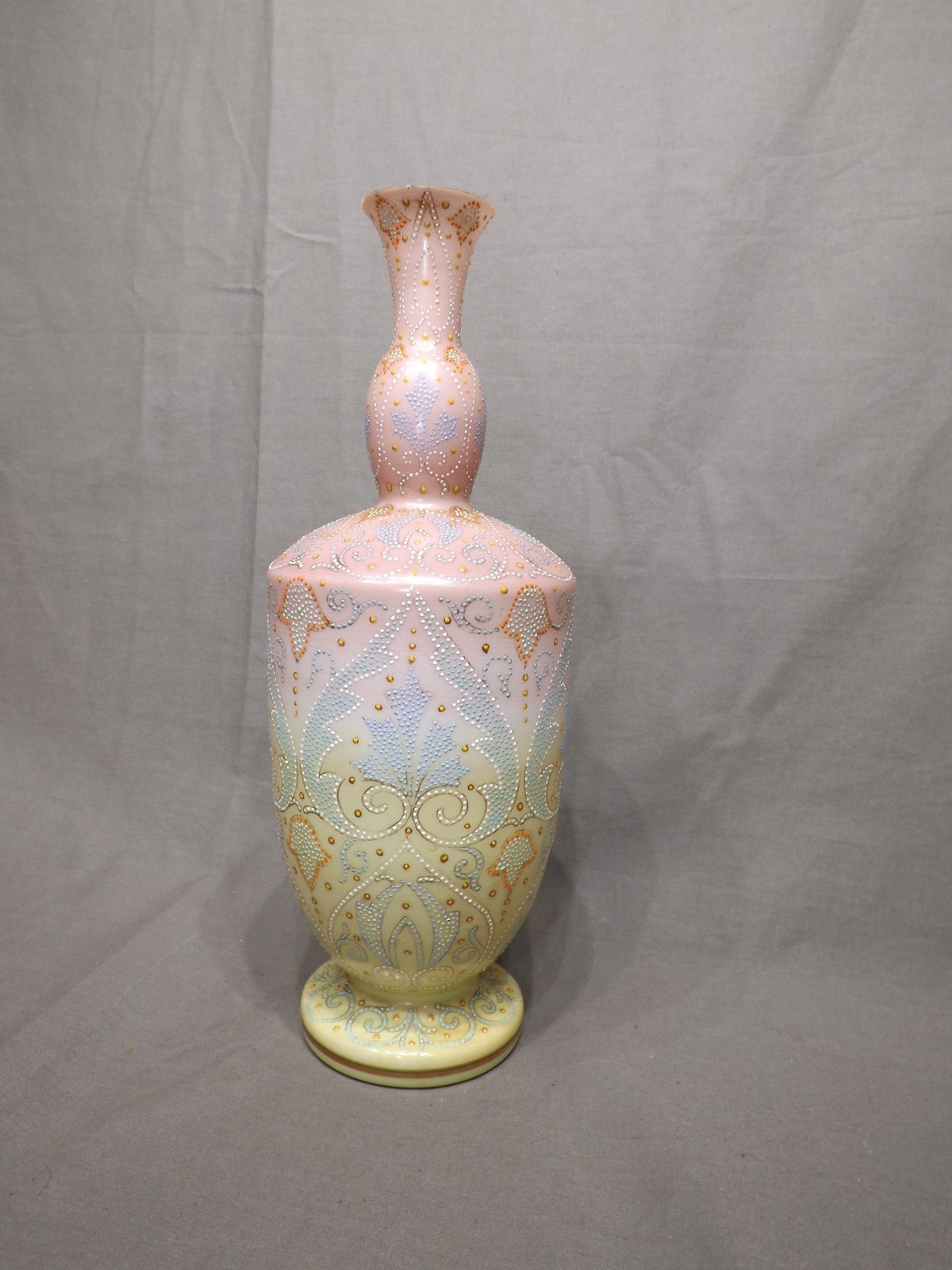 Beautiful multicoloured 19th Century French antique jewelled glass vase.
