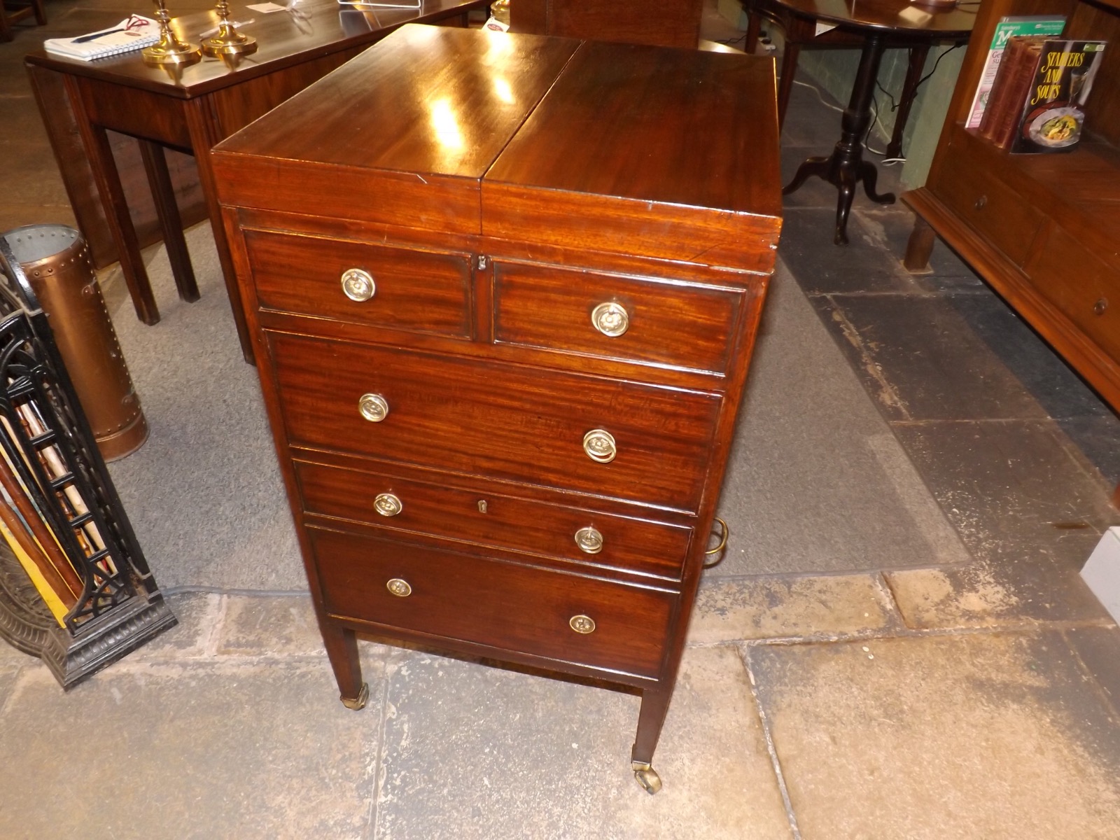Rare and unusual Georgian Mahogany gentlemans dressing stand. Beautifully presented with a side drawer hidden behind the false front.