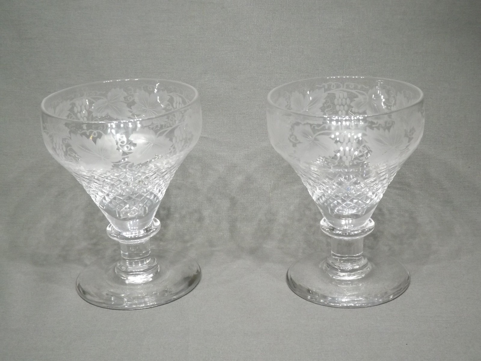 These are a fine pair of 19th Century Georgian antique rummer's with engraved bowls of fruiting vine.