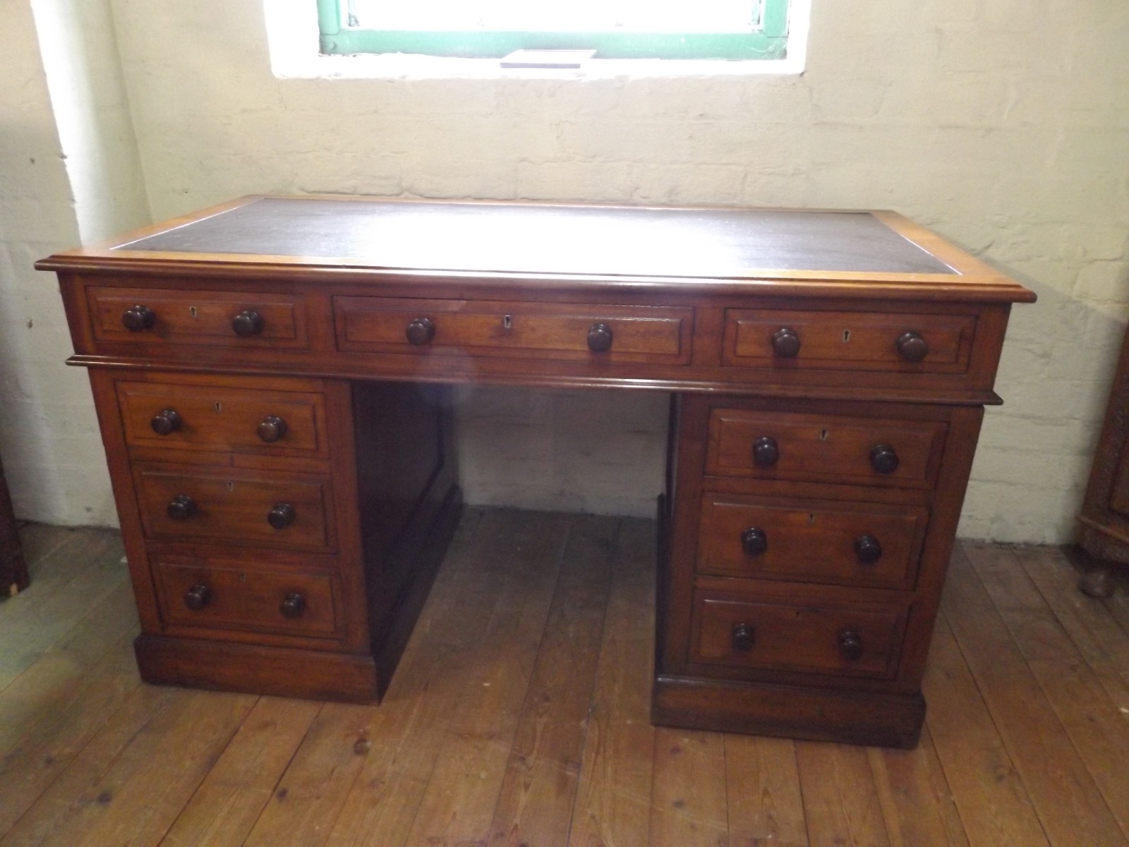 Offered for sale is this gorgeous 19th Century Victorian antique mahogany pedestal kneehole desk which is in near original condition.