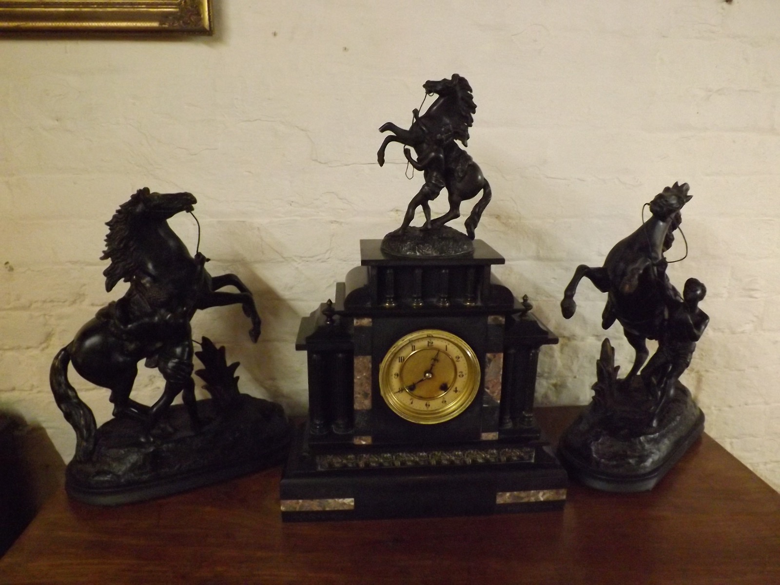 The rearing horse has a broken leg on the clock we are looking to repair it as soon as possible
