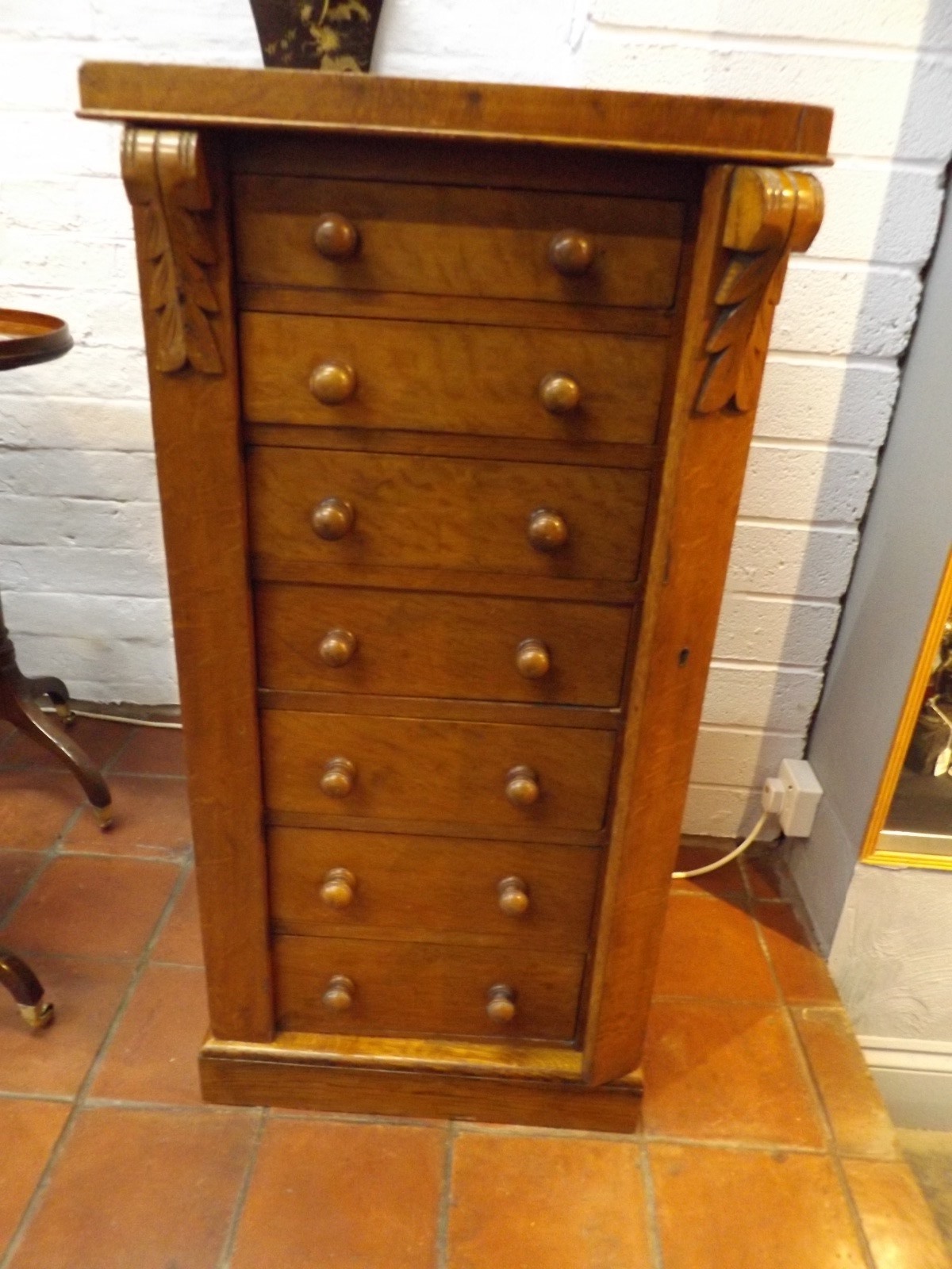 19th Century Wellington Chest containing seven drawers that can be secured by the lock which has recently been repaired. This is a beautiful piece dating back to and is in very good condition, made of oak this item is still a wonderfully solid piece that could grace any home.