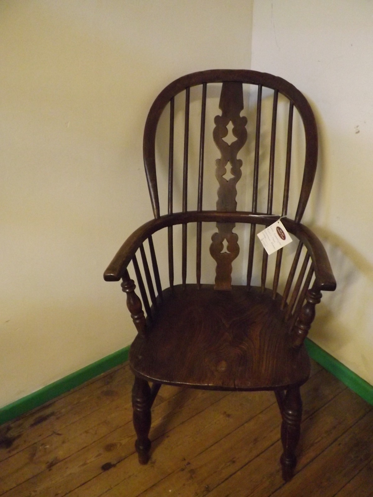 Here we have a beautiful late Georgian ash and elm Windsor elbow chair. This style of chair is very popular because of its high back and wide seat with curved arms. Very comfortable and practical with the saddle seat. This piece could be used in multiple rooms as either a dining chair bedroom chair or even a kitchen chair. The central fret splat and spindles are all in good condition.